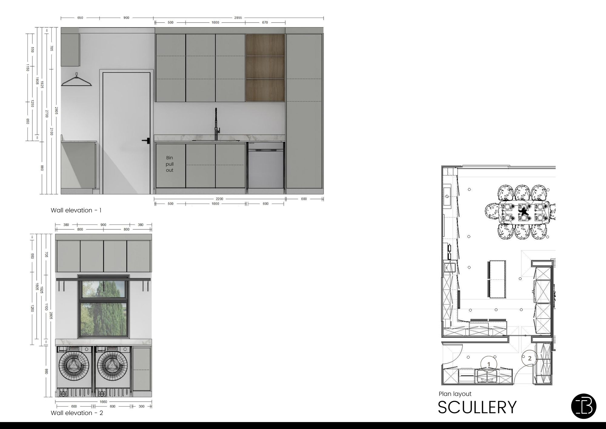 - Kitchen, scullery, laundry, pantry area